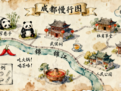 抽象创意成都旅游地图-豆包提示词NanoBanana提示词3成都旅游地图提示词: 画幅比例16:9,一张迷人而精致的成都手绘旅游地图,具有吉卜力工作室艺术设定集般的风格。整个画面是在一张有纹理的、陈旧的羊皮纸上的水彩和钢笔淡彩插画。整体美学风格异想天开、充满活力和生活气息。 地图布局与风格: 地图以风格化的等轴测视角,展示了成都的核心地标,这些地标被描绘成可爱、精细的微缩建筑和图标(例如,熊猫基地的熊猫、锦里的灯笼、...赞 (0)mmxhy2025-11-22阅读(4)标签:NanoBanana / 豆包文生图