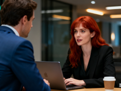 产品商业商务对话电影剧照提示词4豆包提示词:一位红发女子身着黑色西装外套,正与一名穿蓝色商务西装的男子交谈。场景为室内,是某部电影的截屏画面。 nano banana prompt:A redhead woman in a black blazer talks with a man in a blue business suit. Indoor setting. Screencap fro...赞 (0)mmxhy2025-11-22阅读(5)