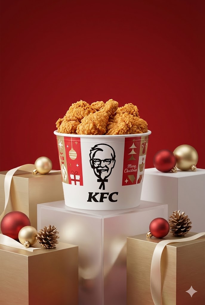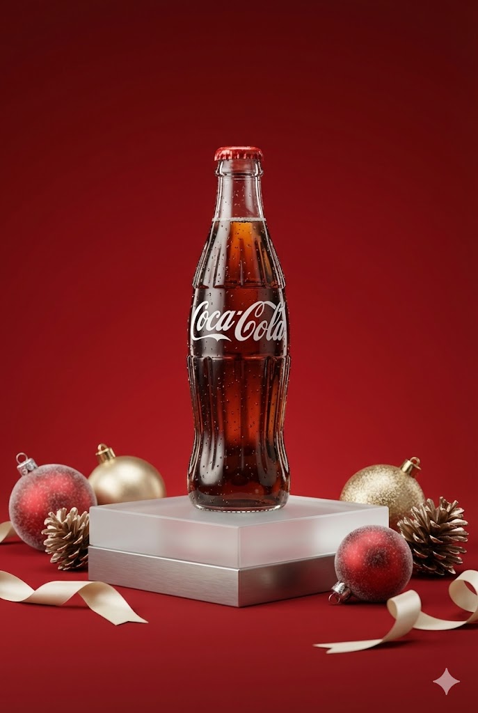 为【品牌名称】拍摄一张极简风格的高端商业圣诞海报。产品作为画面绝对中心,放置在一个精致的极简几何展台上。周围巧妙布置少量的、色调统一的高级圣诞装饰(如磨砂质感的圣诞球、金属质感的松果或丝带),作为氛围点缀,不要喧宾夺主。专业的商业影棚布光,柔和的侧光突显产品的高级质地和Logo细节。背景为干净的纯色(品牌色),带有微妙的景深效果。8k分辨率,超清晰画质,时尚杂志大片质感。